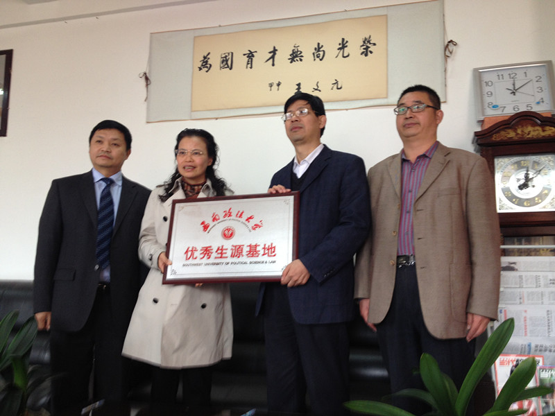 在与两所中学建立优秀生源基地的仪式上,双方签署了《西南政法大学优秀生源基地协议》,并向两所中学授予“西南政法大学优秀生源基地”牌匾。