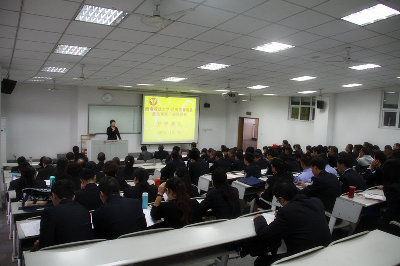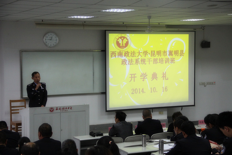 10月16日上午8点30分,西南政法大学·云南省昆明市嵩明县政法系统干部培训班开学典礼在博学楼4615教室顺利举行。我校党委副书记、纪委书记王建华、我院党总支书记李隆琼、副院长陈亮以及所有培训班学员参加了此次典礼。本次典礼由李隆琼书记主持。