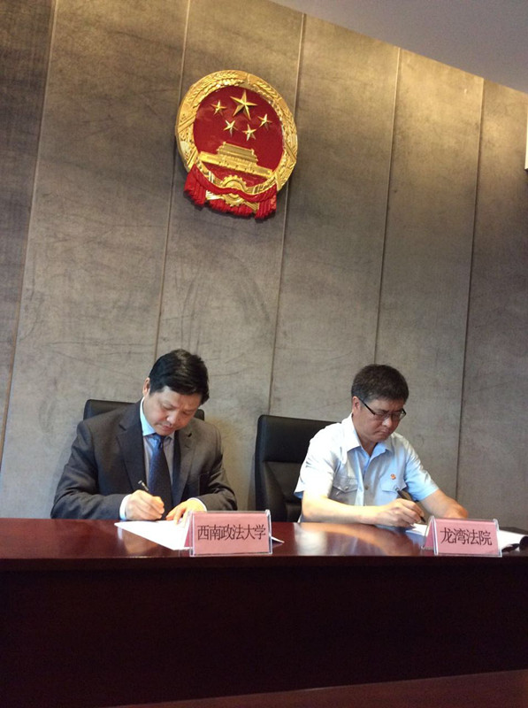 随后,应用法学院院长杨建学与龙湾区人民法院院长李敏共同签署了基地共建协议。