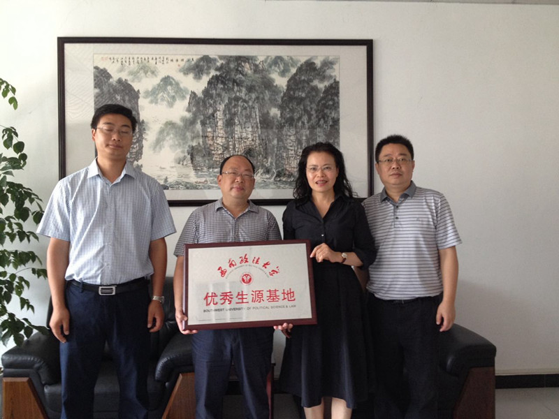 签约仪式上,双方签署了《西南政法大学优秀生源基地协议》,李书记代表我校向中学授予“西南政法大学优秀生源基地”牌匾。