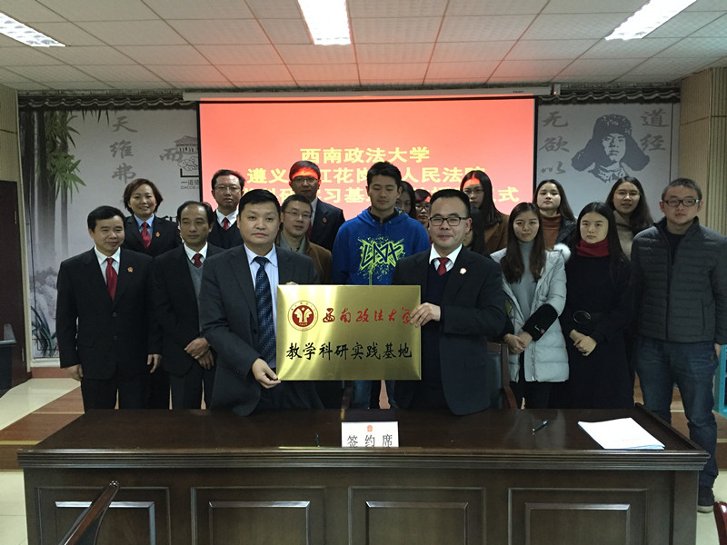 12月13日上午,应用法学院与贵州省遵义市红花岗区人民法院共建“西南政法大学教学科研实践基地”签字暨授牌仪式在红花岗区人民法院会议室隆重举行。这是西南政法大学在贵州省遵义市法院系统建设的首家教学科研实践基地。红花岗区法院院长顾占雷、法院中层以上领导及部分法官出席签字、授牌仪式,应用法学院院长杨建学教授、伍鉴萍副教授、铁燕副教授、任世