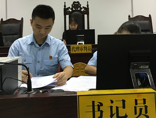 2016年8月30日下午三点,开州区人民法院实习小组中的左程荣同学作为书记员参加法院的庭审活动。