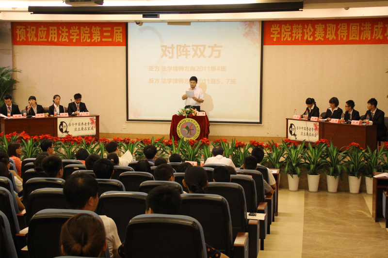 6月18日晚上7点,我院第三届学院辩论赛决赛在学术报告厅拉开帷幕。我院党总支副书记张光君,法学(律师方向)2011级辅导员张玲老师冯成辰老师莅临了本场辩论赛。担任本场比赛评委的是孟庆涛、吴志伟、王筝、陈英、冯子轩五位老师。