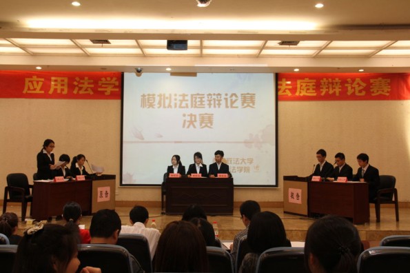 决赛分“季军争夺赛”和“冠军争夺赛”两场。辩论开始前,模拟法庭辩论队成员以其幽默、风趣的表演再现了真实案例。首先“N次方队”与“御前四宝队”进行季军争夺赛,双方围绕案件中“借贷借款合同是否成立生效”展开,援引司法解释,难分伯仲。更为精彩的冠军争夺赛在“老黑队”和“火火队”之间展开,两支队伍在运用法言法语,旁证博言,为观众们献上了一场法辩盛宴。