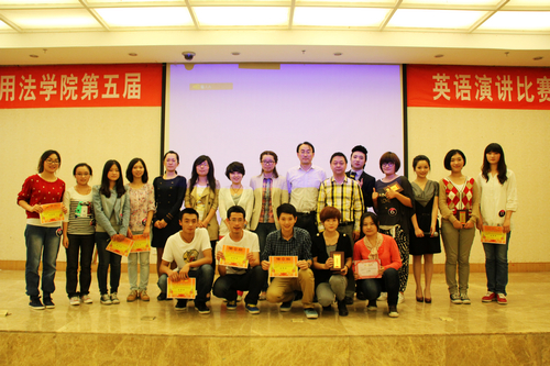 为庆祝建团九十周年,为更好的服务祖国,根据国家发展的实际需要,找准学习成才的立足点和切入口,不断提高成才层次,应用法学院开展了第五届英语演讲大赛。2012年5月14日晚七点,本届英语演讲大赛决赛在图书馆学术报告厅拉开帷幕,担任大赛决赛的评委是:辜帆,林沛,朱元庆,周厚娟四位老师。本次大赛由伍璟、刘博文主持。