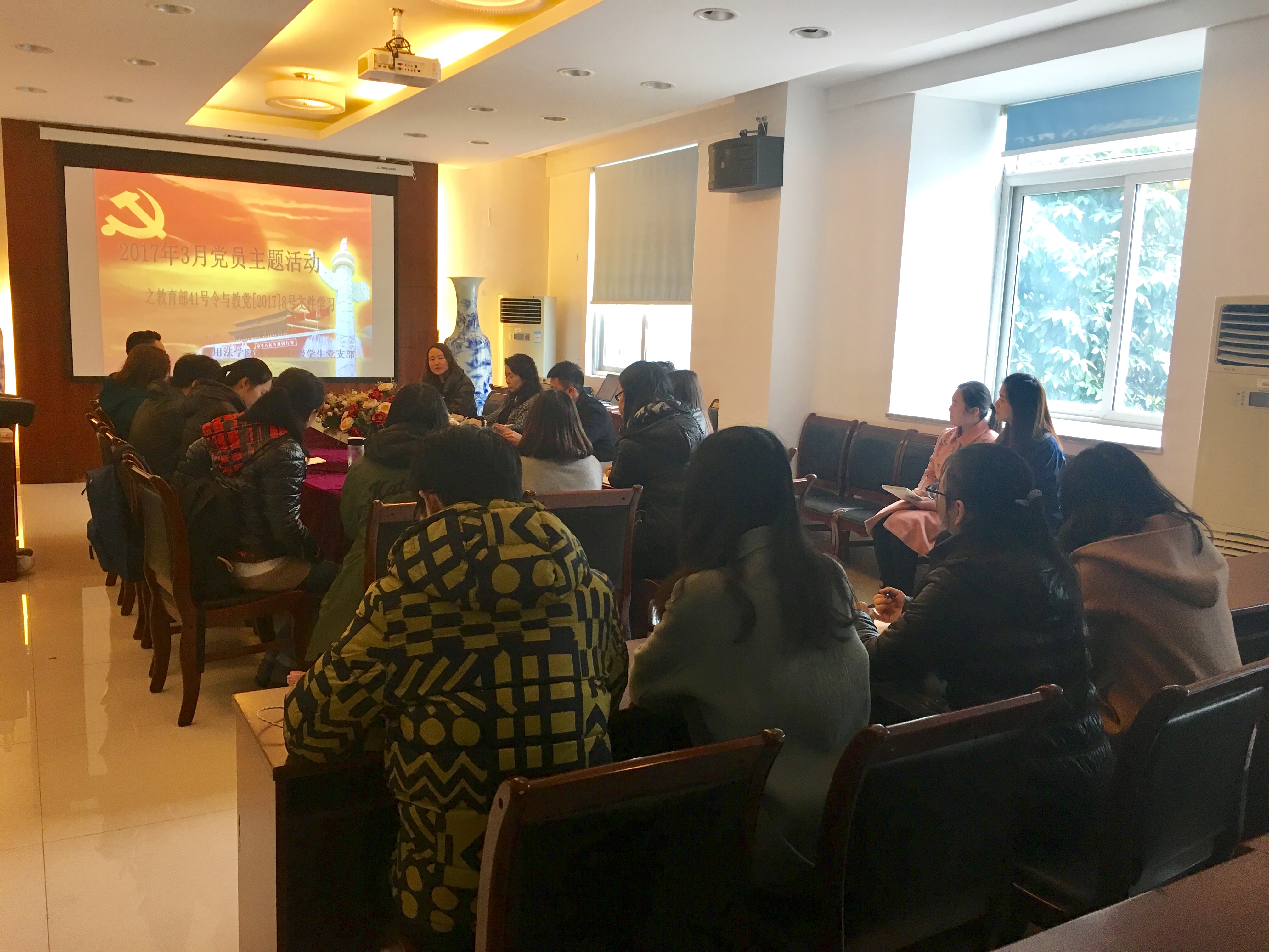 2017年3月14日下午,在敬业楼2025会议室,我院法学2014级学生党支部召开了3月党员主题活动之教育部41号令与教党[2017]8号文件的集中学习活动。会议由支部书记张艳娣主持。支部全体党员同志参加了此次活动。