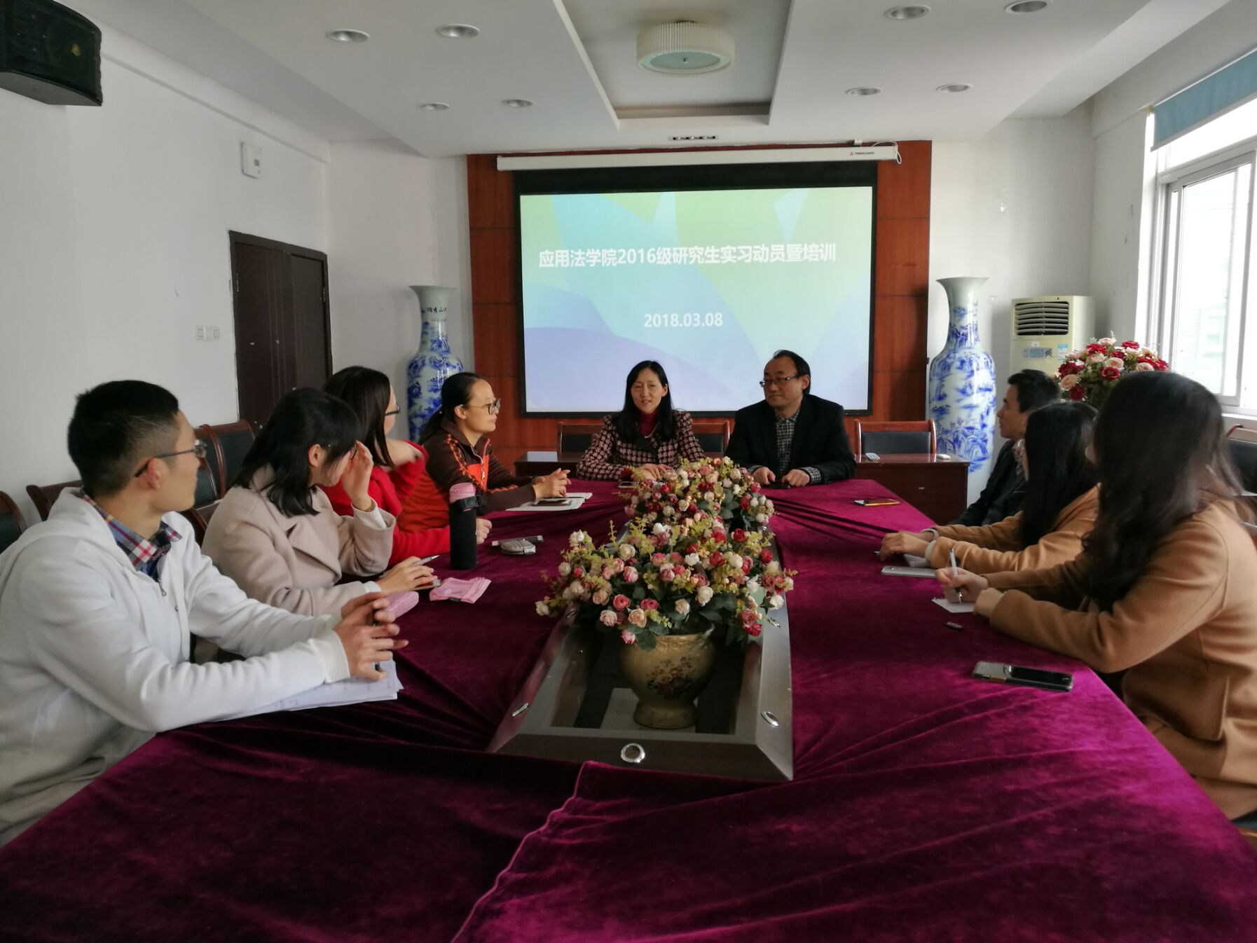 3月8日下午,连日阴雨的重庆一派惠风和畅、春和景明之象。应用法学院2016级硕士研究生即将开赴云南曲靖中院进行为期三个月的集体实习。值此之际,学院领导于敬业楼2025会议室对16级硕士研究生一行开展了实习动员暨培训。