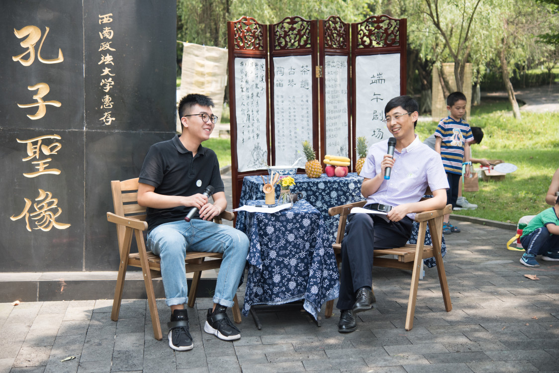 为传承优秀传统文化,响应社会主义文化强国建设,弘扬社会主义核心价值观,2018年6月10日上午,人工智能法学院16级的同学们在辅导员黄薇的组织下,于博学楼下草坪开展了主题为“悠韵端阳”的端午节文化活动。学院党委书记胡晓春、党委副书记赵干甫亲临活动现场,并与本院及其他学院的近百名同学和教职工一同参与进本次端午节活动中。