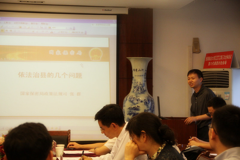 张群副处长在县城城市现代化进程加快的背景下,就甘肃省渭源县政治、经济、文化的实际情况从诉前司法确认机制、重大历史遗留问题、拆迁案件、传统的私人恩怨纠纷等方面就国家治理现代化视域下法治区县的机遇与挑战进行了深入浅出的分析,引出了此次议程的主题。随后张勇主任从职权法定、依法行政、建立法治政府等方面也对此次议题进行了阐述,并指出中国法治建设任重而道远,等不得也急不得。展光华主任提出,作为一个法律人,法治应从自己身边的人开始影响,以点带面,带动全社会的法治,找准切入点、抓住要害,进而解决现今存在的问题。刘之伟庭长结合实践中面临的问题对此次议程的主题进行了分析和阐述,指出依法治国、治事并非主观想象的那么理想化、完美化,而需要一个漫长的过程,需要坚守与不断开拓的精神才能真正走上法治之道。最后周尚君教授对此次议题做了总结性发言,在嘉宾发言期间,与谈人纷纷就此次议题表达了自己的观点,整个学术沙龙气氛活跃,效果良好。